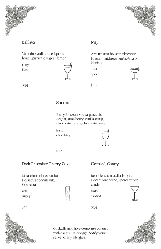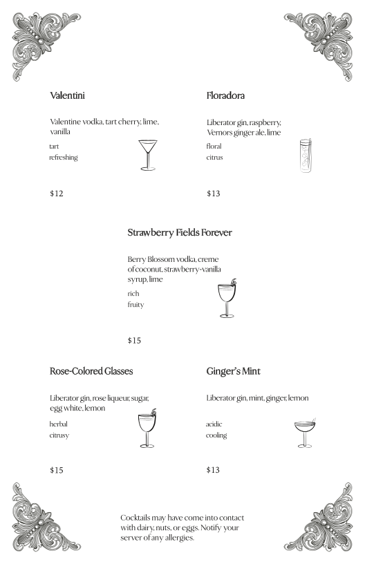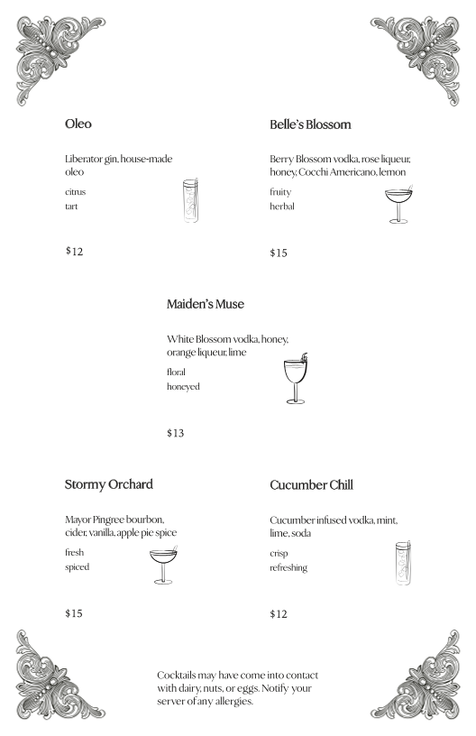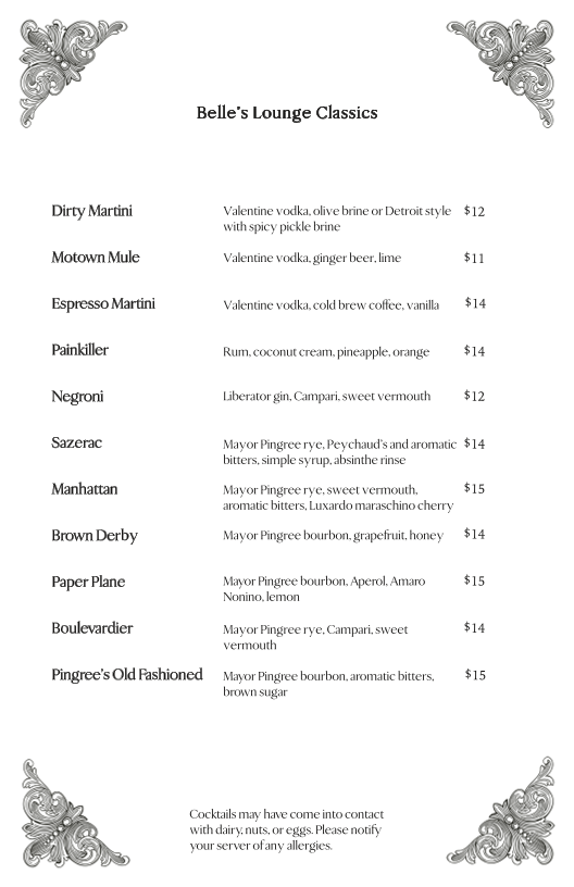 Introducing the menu at Belle's Lounge by Valentine Distilling Co., located in the vibrant heart of Ferndale, MI, is a delightful experience for cocktail enthusiasts and social butterflies alike. Known for its expertly crafted cocktails, Belle's Lounge is a place where innovation meets classic mixology. Guests like Allison Ruby attest to the mixologists' ability to create unique drinks tailored to individual tastes, ensuring every visit feels personal and extraordinary.